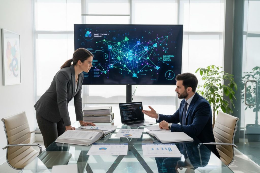Les smart contracts, souvent déployés sur des plateformes comme Ethereum, sont des programmes informatiques autonomes qui exécutent automatiquement des instructions lorsque des conditions prédéfinies sont remplies. Ils permettent d’automatiser des transactions financières, des indemnisations d’assurance ou des transferts d’actifs numériques, avec rapidité et réduction des coûts d’intermédiation.
